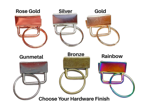 Each key wristlet is 6” x 1” is offered with a choice of hardware (see pictures and drop-down menu). Order with or without a clasp.