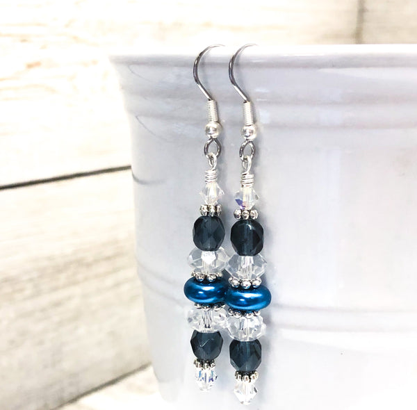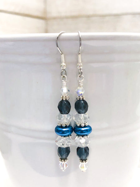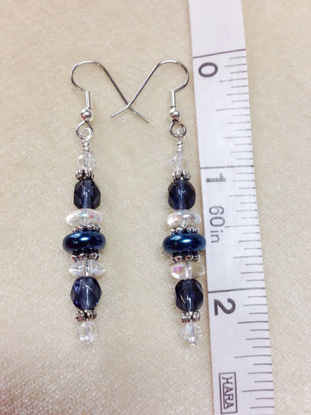 Crystal and glass pearl earrings that dangle are great for every occasion This beaded earring set is made with surgical steel french hook ear wires. I use wrapped loops to give a finished look. Earrings come with rubber ear backs that slide on to keep earrings from falling out of ears.