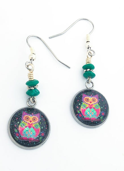 This earring set features colorful bohemian owls pictured on the charm dangles. Made with surgical steel ear wires. You will need to be ready for compliments when you wear these. Rubber earring backs are included.